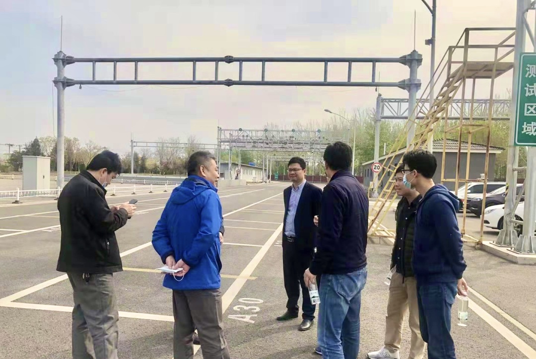 隨后團(tuán)隊(duì)赴易路行交通試驗(yàn)場(chǎng)參觀。試驗(yàn)場(chǎng)占地大,測(cè)試道路呈環(huán)形,門架林立,路側(cè)設(shè)備紛繁復(fù)雜,團(tuán)隊(duì)成員沿著環(huán)形道路,一邊參觀,一邊聽(tīng)取現(xiàn)場(chǎng)工作人員的介紹,對(duì)試驗(yàn)場(chǎng)測(cè)試內(nèi)容和測(cè)試環(huán)境的搭建有了初步認(rèn)識(shí)。