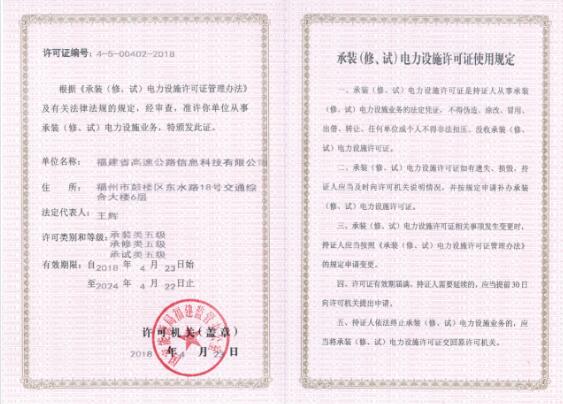 日前,我司電力承裝(修、試)五級資質(zhì)獲批,該資質(zhì)的取得為我司在供配電領域拓展奠定了基礎。